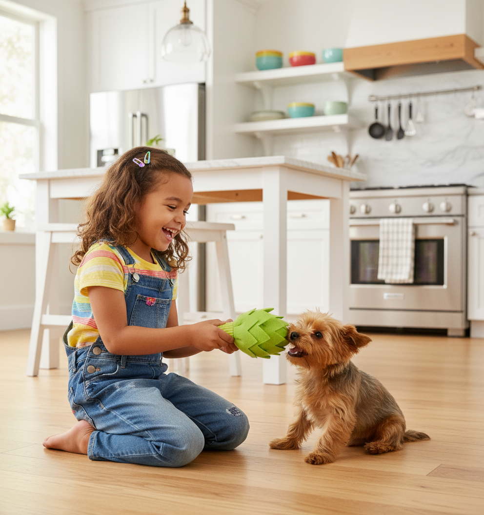 功能:靜音啃咬區:頂部無聲設計,以獨特質感滿足啃咬需求。發聲獎勵:咬壓底座會發出趣味吱吱聲,引導狗狗咬啱位置。